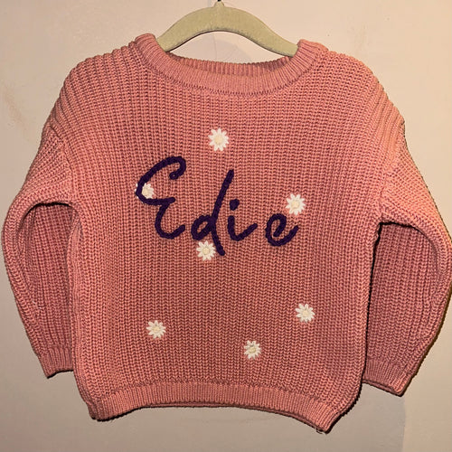 Hand Embroidered Oversized Knitted Jumper with dark purple yarn